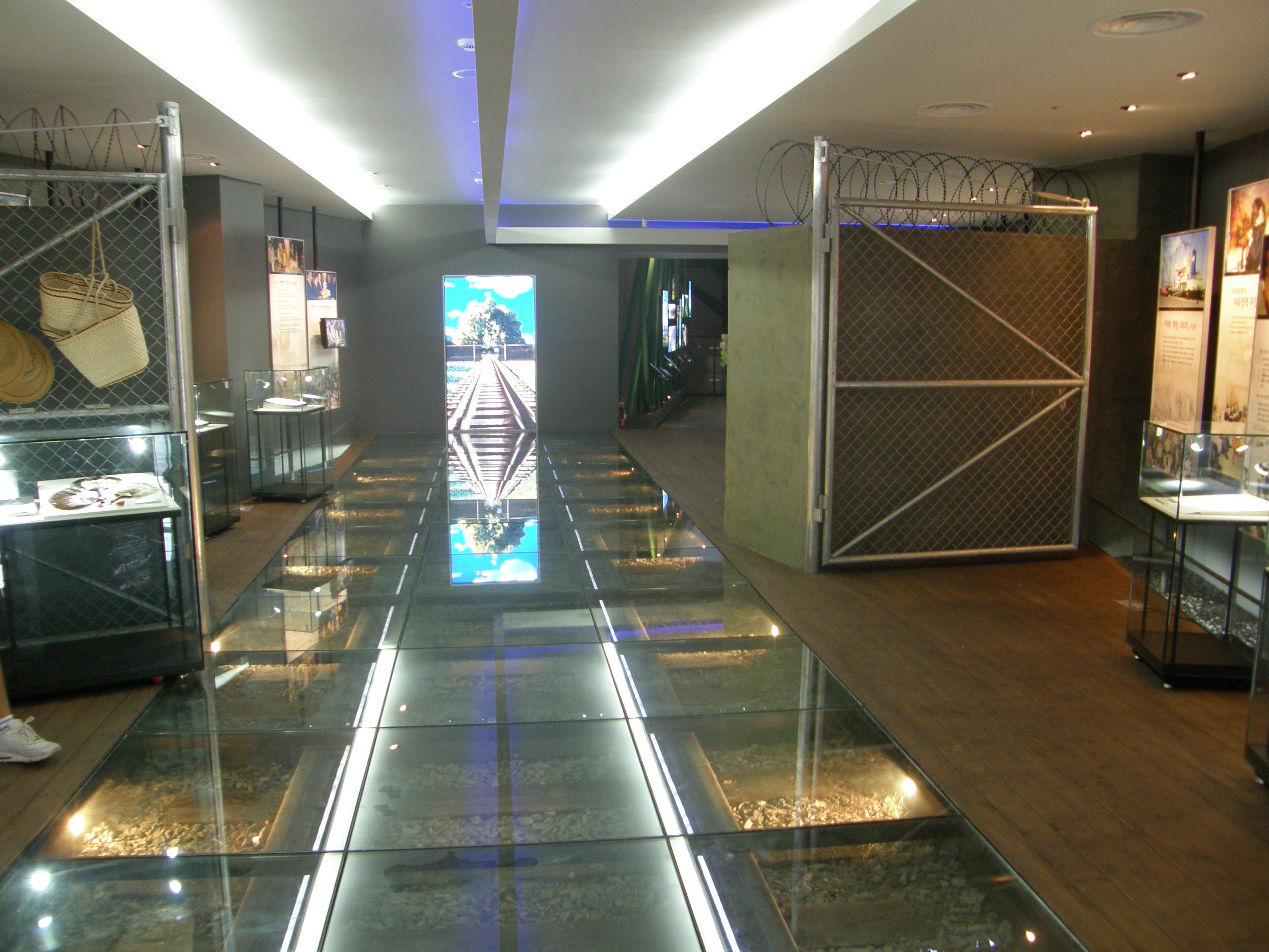 Knapp ein Kilometer vor dem Goseong Unification Observatory steht das große DMZ Musem (DMZ = Demilitarized Zone) – jenes wurde 2009 fertiggestellt und ist entsprechend sehr modern. Der Eintritt kostet 2’000 Won, und das Museum ist durchaus interessant. Es geht nicht nur darum, wie es zur Spaltung des Landes kam oder was für Scharmützel wann und wo an der Grenze stattfanden, sondern auch darum, wie aus der breiten entmilitarisierten (und gleichermassen entvölkerten) Zone ein wahres Naturparadies entstand.