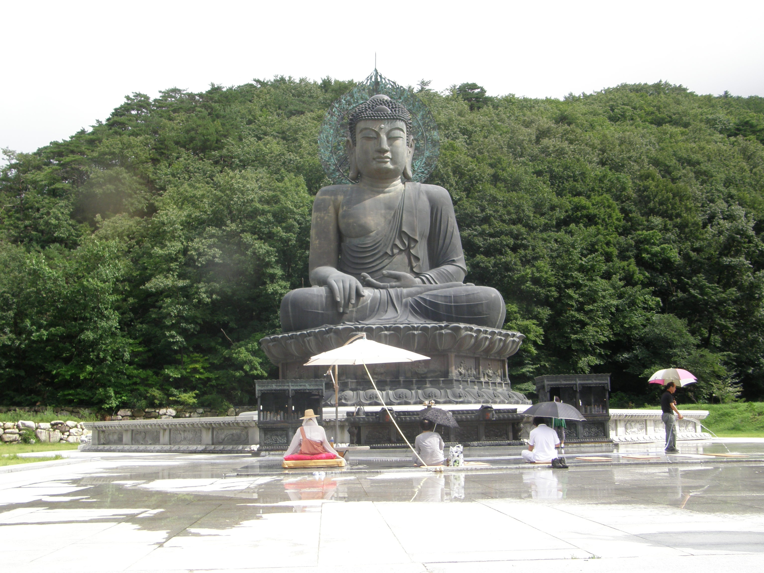 Zurück im Tal, wäre dort noch der fast 15 Meter hohe Bronzebuddha 統一大仏 통일대불 Tongil Daebul – der “Wiedervereinigungsbuddha”. Jener ist im Gegensatz zum Großen Buddha von Kamakura zwar etwas größer, aber wesentlich neuer – der Buddha von Sinheungsa wurde aus Spendengeldern gegen des 20. Jahrhunderts errichtet und kostete wohl insgesamt über 4 Millioen Dollar.