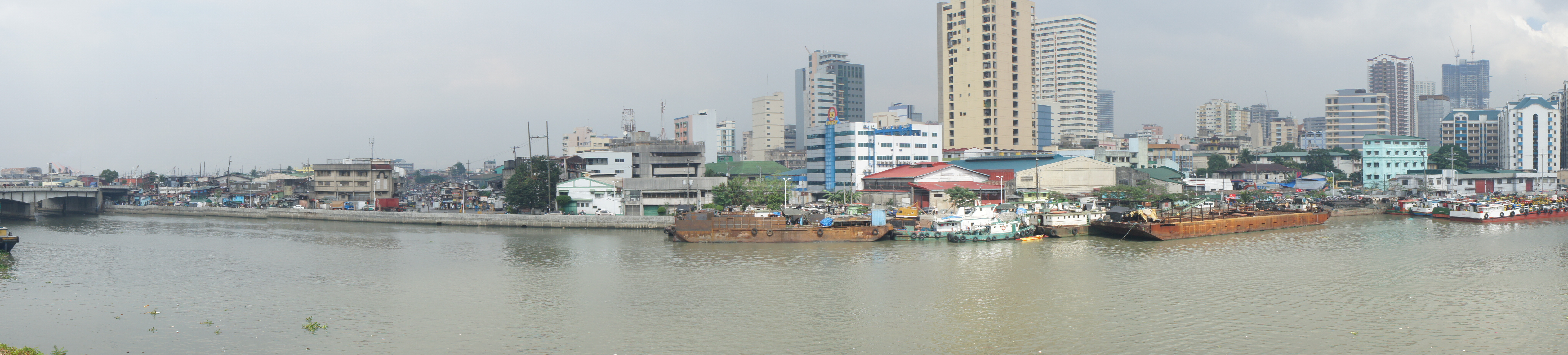 Hinter der Moschee fließt ein weiterer, Kloake-ähnlicher Fluß, an dem sich slumartige Behausungen erstrecken. Vor allem nördlich des Pasig-Flußes findet man in Manila slumähnliche Wohngebiete. Dies sind teils Mikroslums wie zum Beispiel entlang der kleineren, sehr schmutzigen Flüsse, aber auch grössere Slums wie zum Beispiel der Slum rund um das Bahnkreuz Doroteo Jose/Recto – dort führt ein Übergang von einem Bahnhof zum anderen quer durch einen kleinen, aber deutlich ausgeprägten Slum. Da sich Manila jedoch vor allem in den letzten Jahren stark weiterentwickelt hat, werden immer mehr der Ärmsten der Armen in Slums ausserhalb der Stadt Manila selbst “umgesiedelt”. Laut eines UN-Reports lebten in den 2000ern noch die Hälfte der rund 11 Millionen Bewohner des Großraums Manila in Slums.